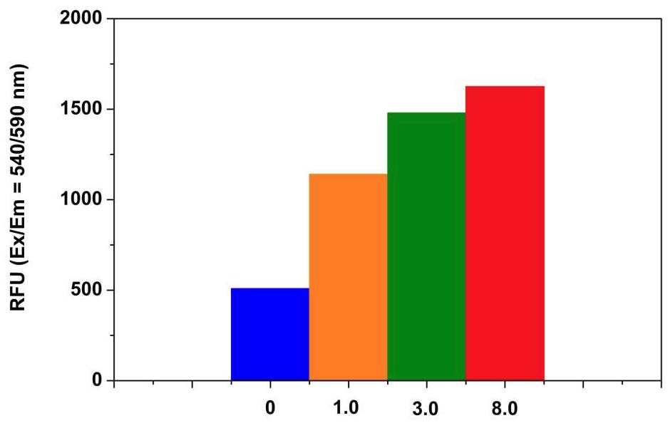 Sphingomyelinase dose responses were measured in a 96-well black solid plate with Amplite® Fluorimetric Sphingomyelinase Assay Kit using a Gemini fluorescence microplate reader (Molecular Devices). As low as 0.15 mU/mL sphingomyelinase was detected with 60 minutes incubation (n=3).